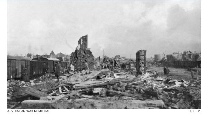 AWM H02112. Railway Station at Albert 1917. Photographer unknown, photograph sourced from the Pictorial Collection of the Australin War Memorial