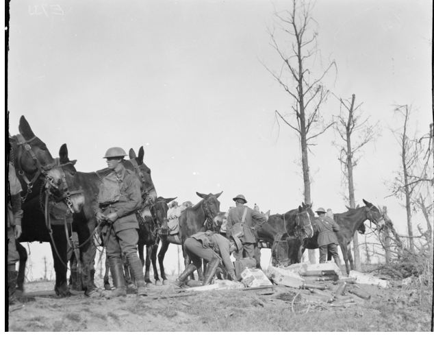 1st DAC 19.9.1917 transporting ammunition to Birr Cross Road at Ypres. Photographer unknown, photograph source AWM E0073