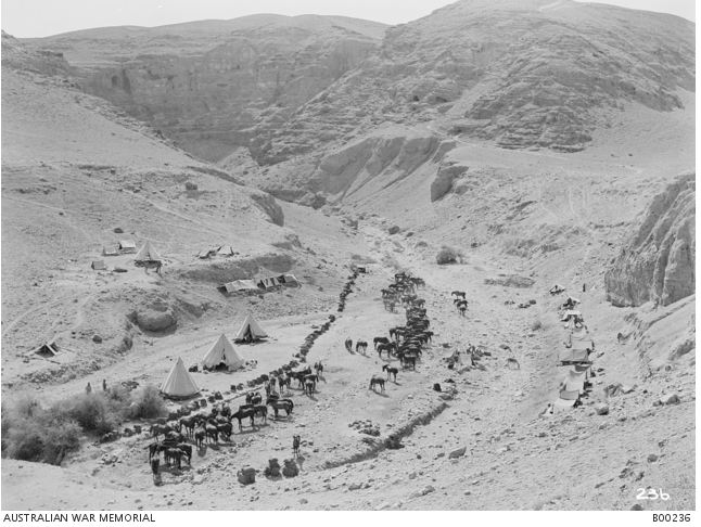 AWM B00236. 9th Light Horse camped in Jordan Valley near Jericho 1918. Photographer unknown, photograph sourced from the Pictorial Collection of the Autsralian War Memorial