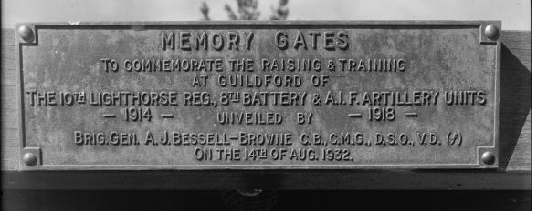 Memory Gates Guildford- Plaque unveiled by Brig. Gen. Bessell-Browne in Stirling Square Guildford