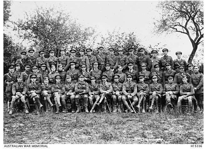 AWM H15336. Officers, 3rd Squadron AFC. Premont, France Oct.1918 (Blundell Middle row 4th from Rt) Photograph sourced from the Pictorial Collection of the Australian War Memorial