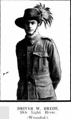 Brede, William Robert (aka William Robert Owen). Lieutenant. 10th Light Horse Regiment. SN 42. Returned 3.9.1919