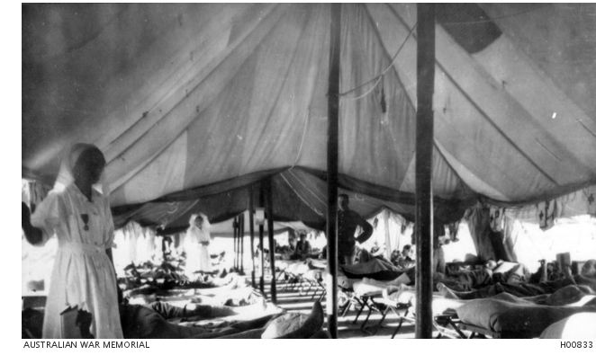 AWM  H00833. Ward in an Australian Army Hospital Gaza. Photographer unknown, photograph sourced from the Pictorial Collection of the Australian War Memorial