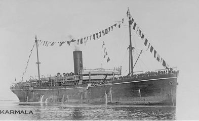 Great Southern Postcards. RMS 'Karmala'. Photograph sourced and reproduced with permission of Great Southern Postcards, http://www.greatsoutherncards.com.au/contact.htm