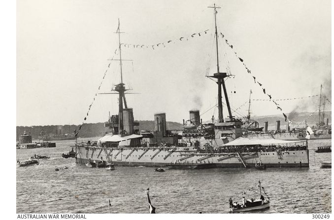 AWM  300249. HMAS 'Australia' 1913 in Sydney Harbour. Photographer  unknown, photograph sourced from the Pictorial Collection of the Australian War Meomrial