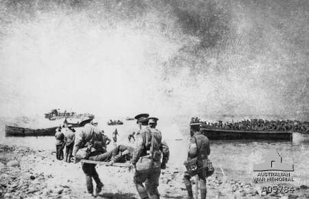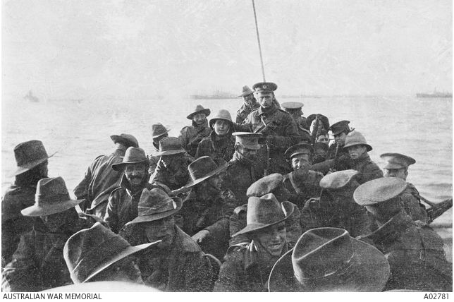 AWM A02781. Troops being towed ashore at Gallipoli April 1915. Photographer unknown, photograph sourced from the Pictorial Collection of the Australian War Memorial