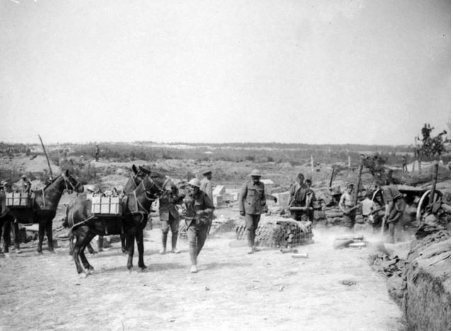 AWM E00090. Ammunition packhorses, France, December 1916. Photographer unknown, photograph sourced from the Pictorial Collection of the Australian War Memorial