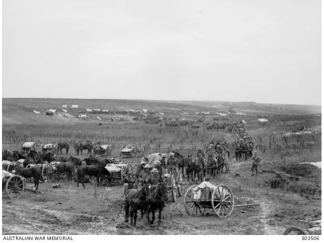 AWM E03506. Australian Artillery passing through a captured section of the Hindenburg Line, Oct. 1918. Photographer unknown, photograph sourced from the Pictorial Colection of the Australian War Memorial