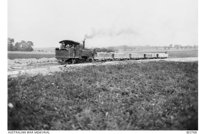 AWM E02768. Light Rail France 1918. Photographer unknown, photograph sourced from the Pictorial Collection of the Australian War Memorial