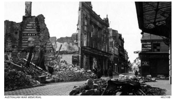 AWM H02108. Amiens France after bombing 1917. Photographer unknown, photograph sourced from the Pictorial Collection of the Australian War Memoria