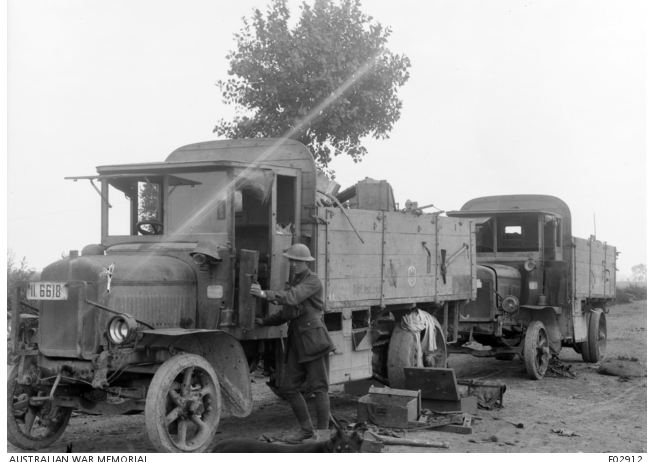 AWM E02912. Framerville, German truck captured in August 1918. Photographer unknown, photograph sourced from the Pictorial Collection of the Australian War Memorial