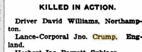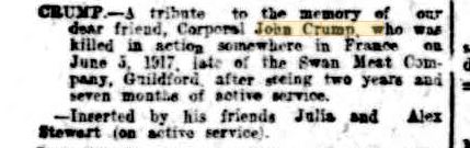 Obituary J. Crump. The West Australian 6.11.1917, Family Notices p1
