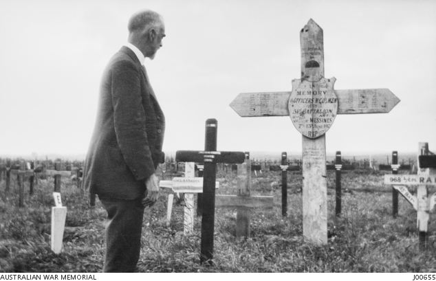 AWM J00655. Messines Ridge Cemetery, showing a grave for Officers and NCOs amongst other graves. Donor A.T.Sharp Collection, photograph sourced from the Pictorial Collection of the Australian War Memorial