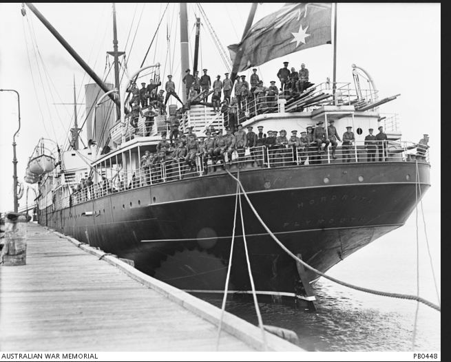 AWM PB0488. HMAT 'Hororata'. Photograper unknown, photograph sourced from the Pictorial Collection of the Australian War memorial