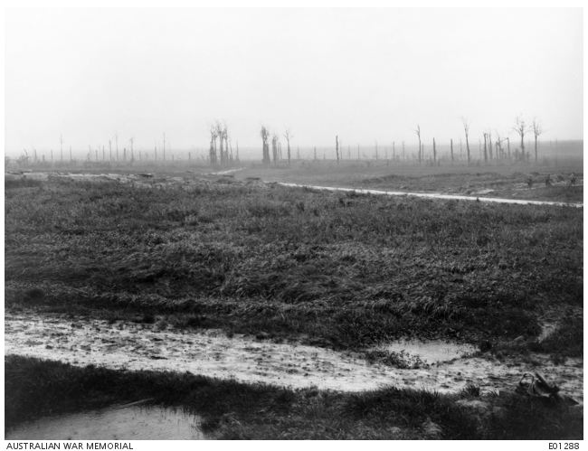 AWM E0128. Messines, showing winter trenches 1917. Photographer unknown, photograph sourced from the Pictorial Collection of the Australian War Memorial