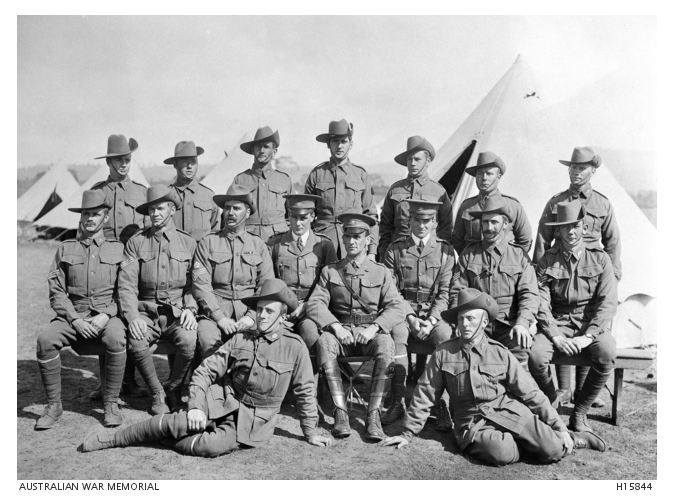 Lieut. W.L.Garrard with Office & NCOs at Brighton, Hobart, Tasmania. 1914. Photograph source AWM H15844