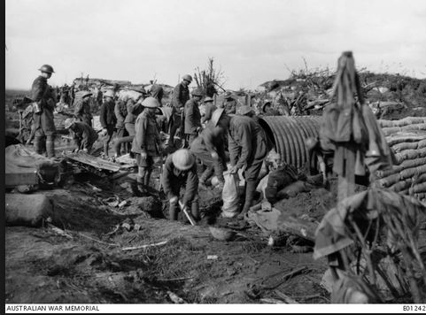 AWM E01242. 13th Field Coy. Engineers constructing dugouts near Zonnebeke 1917. Photographer unknown, photograph sourced from the Pictorial Collection of the Australian War Memorial
