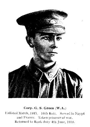 Photos  Cpl. Green G.S. National Bank of Australasia War Record of Bank & Staff . Melb. Osbaldstone & Co. 1921 p21