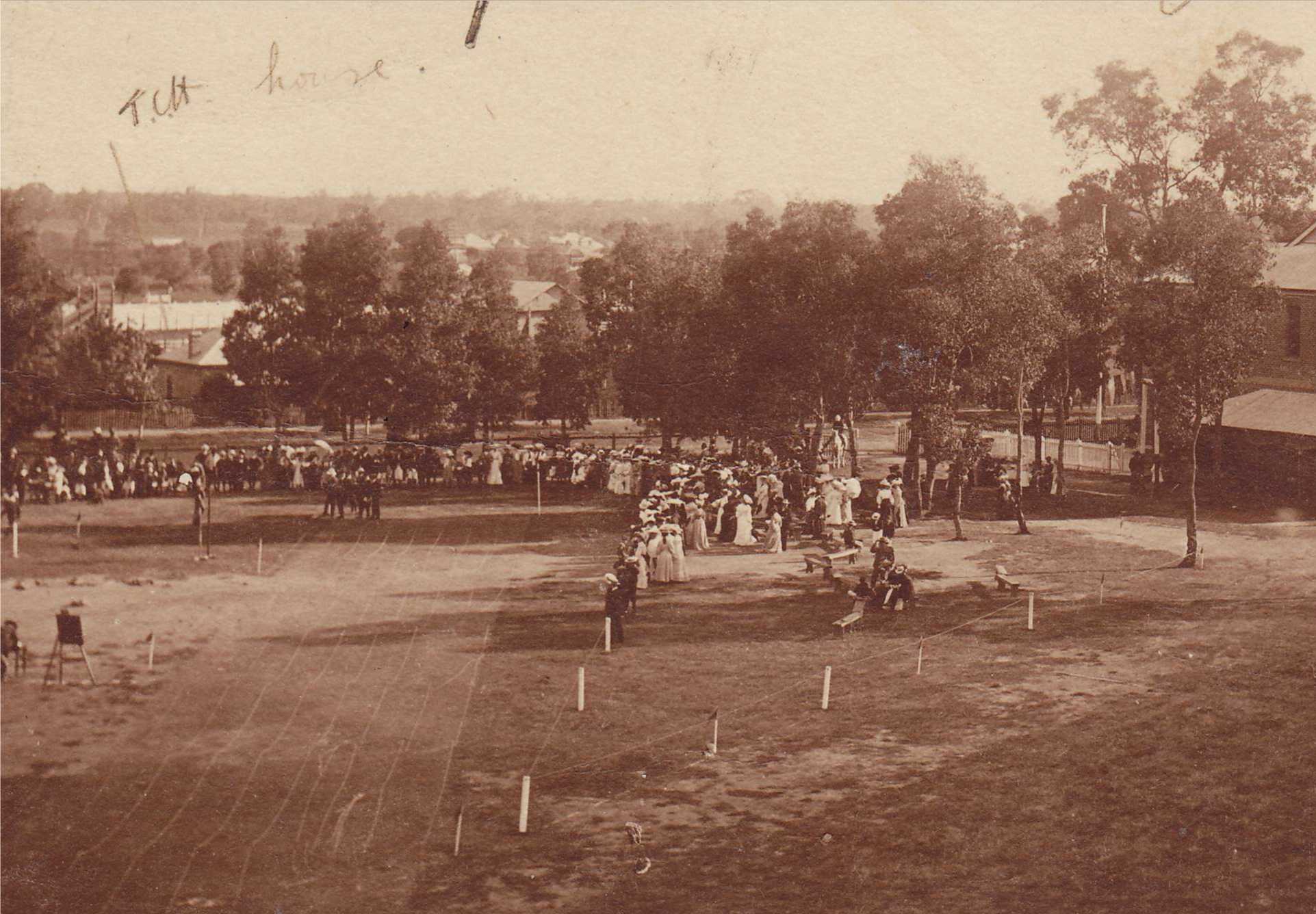 Hewitt House (marked TCH House) at GGS pre WW. Athletics Day. Photographer unknown, photograph sourced from and used with permission of GGS Archives