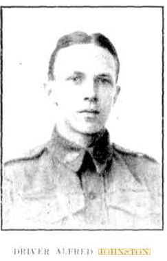 Johnston, Alfred Lawrence. Driver. 103 Howitzer Battery, Australian Field Artillery (AFA). SN 32545. Returned 20.4.1919