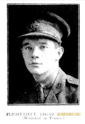 Johnston, Edgar Charles. Captain. Royal Flying Corps. (SN 1550) Returned 24.7.1919. Awarded Distinguished Flying Cross