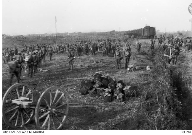 AWM E01193. British Troops entaining at Popperinghe Gate, October 1917. Photographer unknown, photograph sourced from the Pictorial Collection of the Australian War Memorial