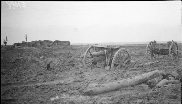 AWM E01088. Abandoned guns at Westhoek after Battle of Passchendaele October 1917. Photographer unknown, photograph sourced from the Pictorial Collection of the Australian War Meorial