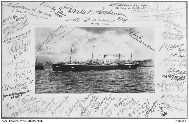 AWM H19319. HMAT 'Medic' 1914. Photographer Hood, Samuel J. Photograph sourced from the Pictorial Collection of the Australian War Memorial