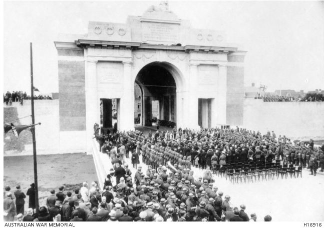 AWM H16916. Menin Gate War Memorial 1938. Secured by Captain James Murphy of the British War Graves Commission. Photographer unknown, photograph sourced from the Pictorial Collection of the Australian War Memorial