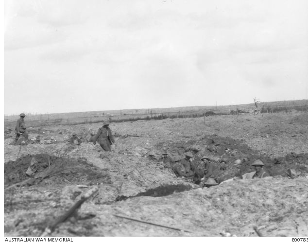 AWM E00783. Polygon Wood, Australian soldiers on shell holes. Photographer unknown, photograph sourced from the Pictorial Collection of the Australian War Memorial