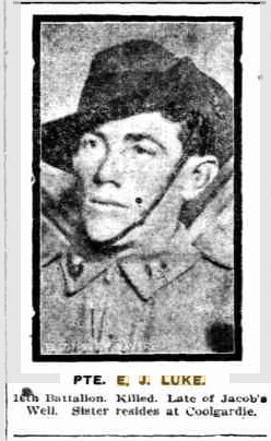 Luke, Edward John. Private.16th Battalion. SN 192. KIA