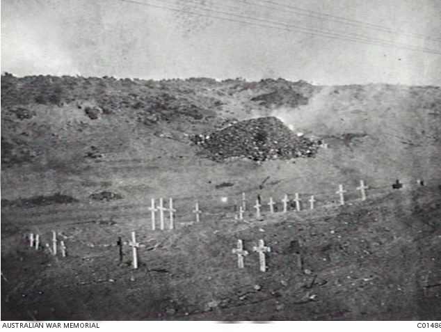 AWM C04186. Cemetery near Lone Pine 1915. Photographer unknown, photograph sourced from the Pictorial Collection of the Australian War Memorial