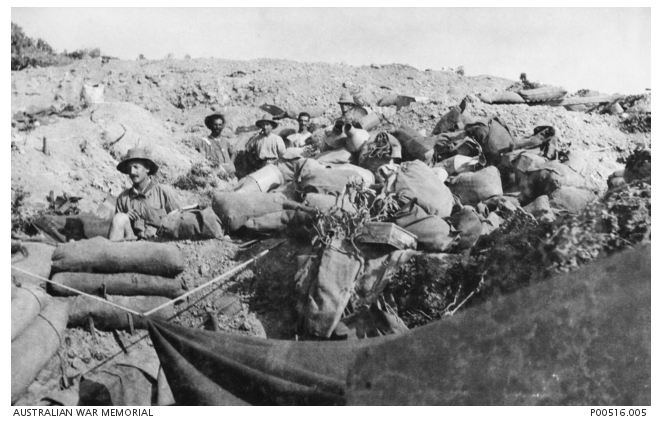 AWM P0516.005. Walker's Ridge -10LH survivors after the 7.8.1915 Charge. Photographer unknown, photograph sourced from the Pictorial Collection of the Australian War Memorial