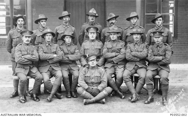 AWM P03552.002. 43rd Battalion. Cpl. R.W. Masters 6th from left in backrow. Photograph sourced from the Pictorial Collection of the Australian War Memorial