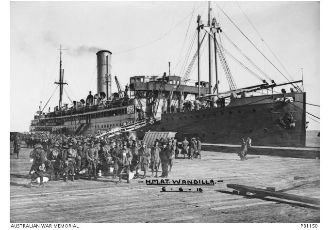 AWM PB1150. HMAT 'Wandilla' at Port Melbourne. Photographer Josiah Barnes, photograph sourced from the Pictorial Collection of the Australian War Memorial