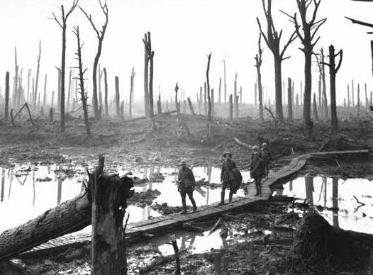 AWM E08184. Ypres. Australian Artillery on duckboards at Chateau Wood 1918. Photographer unknown, photograph sourced from the Pictorial Collection of the Australian War Memorial
