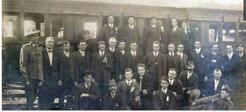 Bunbury Herald 18.8.1914. New Enlistments at Bunbury Station.   A H L Milford back row far right