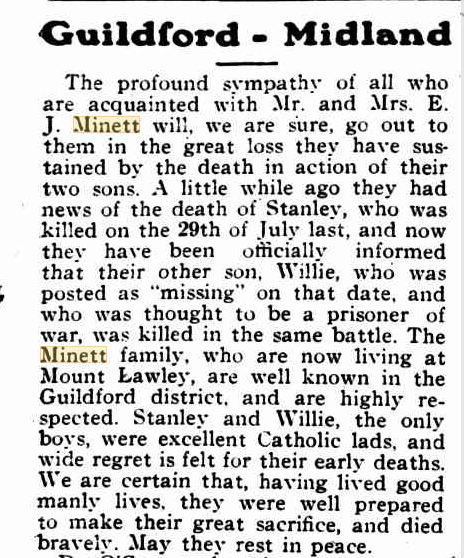 Minett, S J and W H. Article in The Record (Perth WA) 10.3.1917 p 7