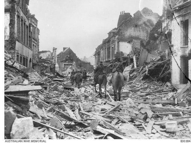 AWM E00384. Rue de Peronne, Bapaume, France. Photographer unknown, photograph sourced from the Pictorial Collection of the Australian War Memorial