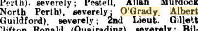 Albert O'Grady. 346th Lits-wounded. Image source Western Mail 9.11.1917 p34