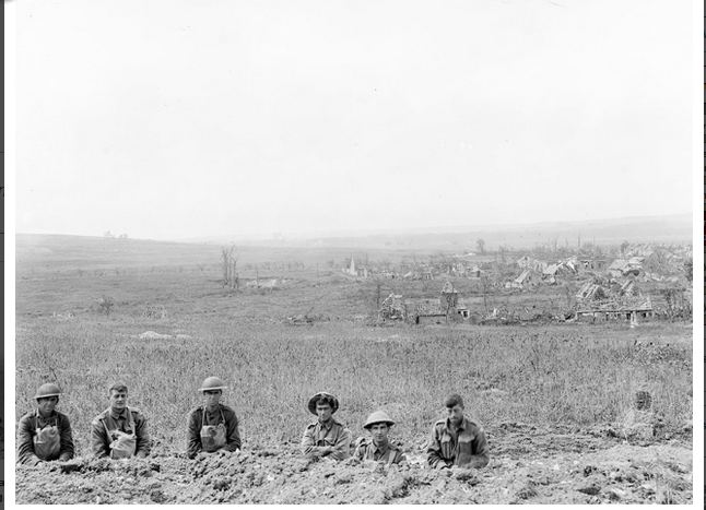 AWM E02844A. Australian and American soldiers in Pear Trench Le Hamel 4.8.1918. Photographer unknown, photograph sourced from the Pictorial Collection of the Australian War Memorial