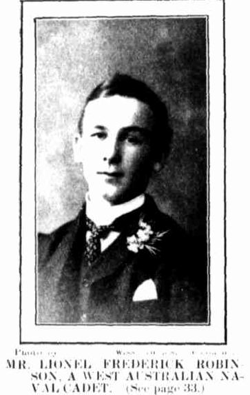Robinson left WA with his father in 1902 to seek a position as a Naval cadet. In 1904 he obtained a position as naval cadet on board the Brittania. (Western Mail 5.3.1904 p33)