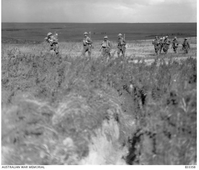 AWM E03358. 4th Pioneers moving to trenches at Le Verguier Sept. 1918. Photographer unknown, photograph sourced from the Pictorial Collection of the Australian War Memorial