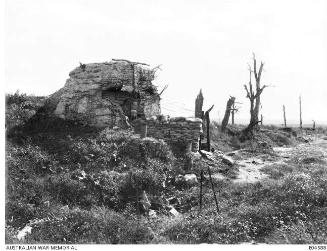 AWM E04588. 'Gibraltar', a damaged German redoubte at Pozieres 1917. Photographer unknown, photograph sourced from the Pictorial Collection of the Australian War Memorial