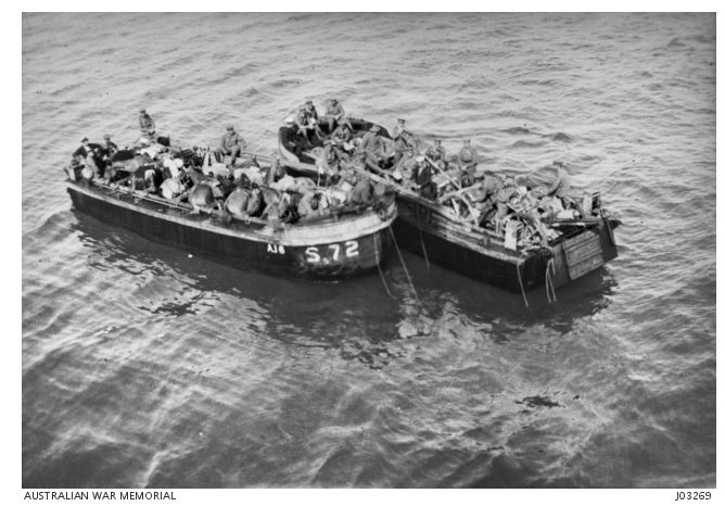 AWM P2194.005. Australian Troops being towed ashore at Gallipoli. Photographer R.M. Bowman photograph sourced from the Pictorial Collection of the Australian War Memorial