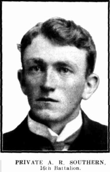 Notes His brother Capt. Harold Alfred Southern, also of the 16th Bn was KIA 2/3 May 1915.