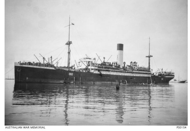 Photo HMAT 'Ulysses'. Photographer P.E.F. Schuler, photograph sourced AWM PS0154