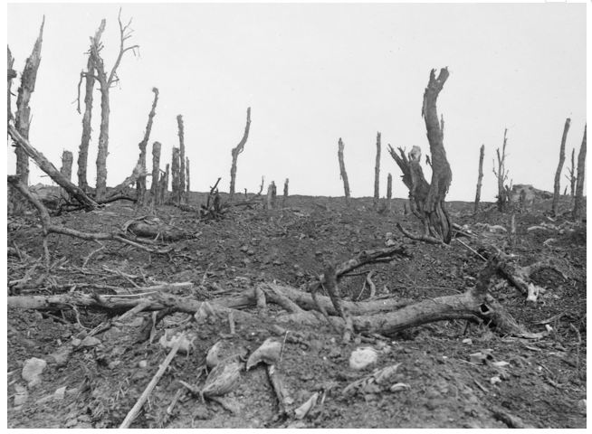 Ruined gardens at Pozieres 1916. Official British War photograph, photograph source AWM EZ0097