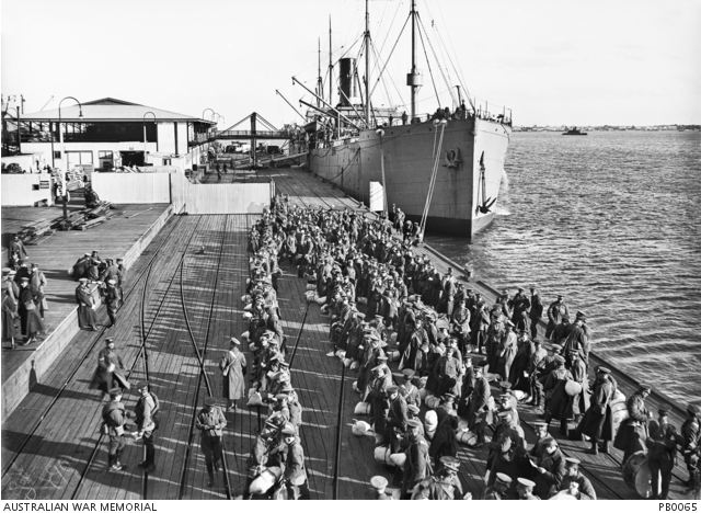 AWM PB006. HMAT 'Afric' at Melbourne Port 1916. Photographer Josiah Barnes, photograph sourced from the Pictorial Collection of the Australian War Memorial