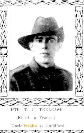 Trelease, Thomas Chester. Private. 11th Reinf. 28th Bn. SN 5101. KIA 1.6.1918 near Corbie, .France. Age 27 years.